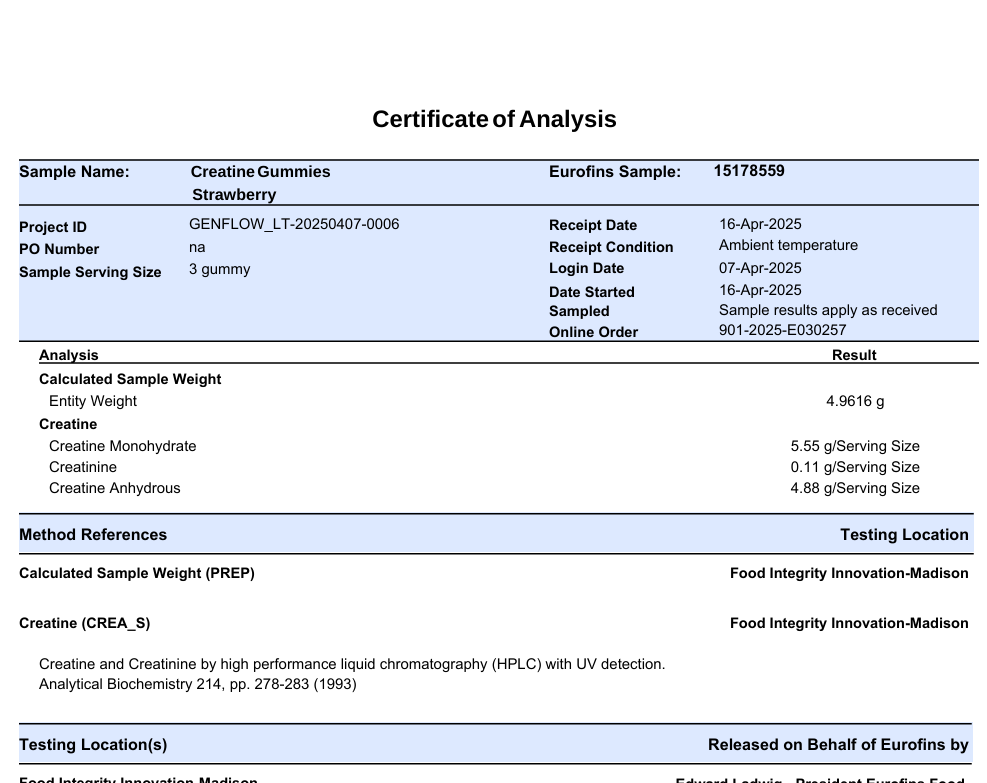 Made with premium, micronized creatine and third-party tested for quality and safety, 1.7g of pure Creatine Monohydrate in just one gummy. Our mission is to make performance nutrition accessible, enjoyable, and trustworthy for everyone—from beginners to fitness enthusiasts.